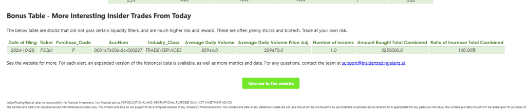 A little over a month ago, I recorded a transaction on PSQH on my insider alerts email.