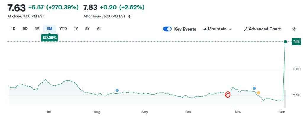This catalyst caused the price to rocket up 300% today alone, and it is currently climbing after hours as well.